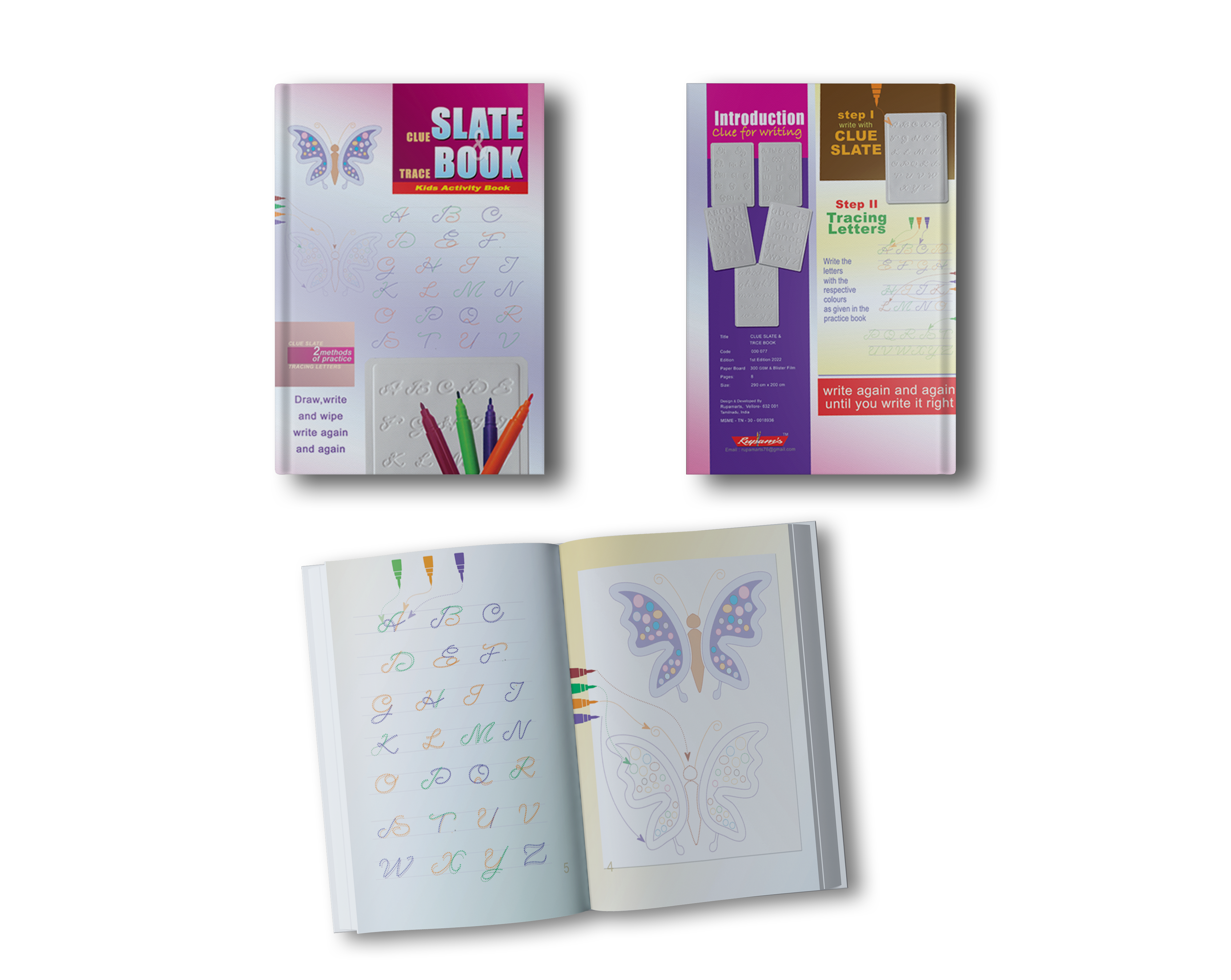 Kids can easily learn different shapes of the letters with water colors pens by connecting the dots. The skill acquired through clue slate will ease the knack of learning the shapes of letters. With trace book children can write , wipe and write as many times as they want until they attain perfection in the shape of the letters. Thus children can learn themselves
