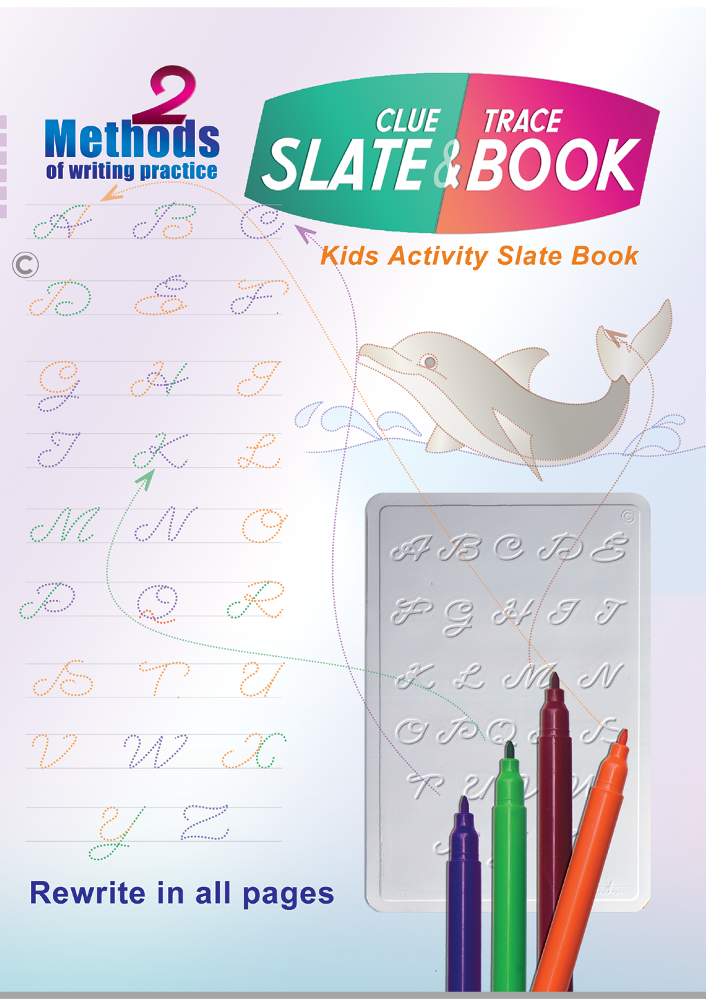 Kids can easily learn different shapes of the letters with water colors pens by connecting the dots. The skill acquired through clue slate will ease the knack of learning the shapes of letters. With trace book children can write , wipe and write as many times as they want until they attain perfection in the shape of the letters. Thus children can learn themselves